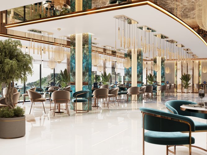 • Панорамные окна, из которых открываются захватывающие виды на морские просторы и горные пейзажи